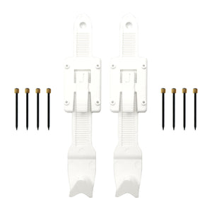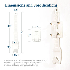 Picture hanging kit includes two (2) Single Strap Adjustable Hangers and eight (8) Steel Hook Nails (4 per hanger)