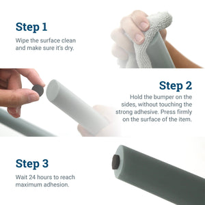 Press bumpers firmly into place on the frame or object. Once a bumper is in place, do not attempt to reposition it as this will ruin the adhesive bond.