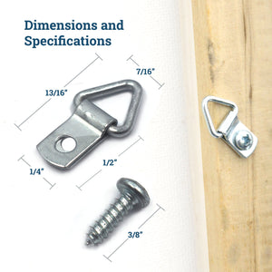 Mini 1-hole hangers are low-profile compact picture hangers that are a departure from bulky hangers. With the one-hole mini D-ring picture hanger, you can now say goodbye to screw eye hangers when attaching picture wire to frames.