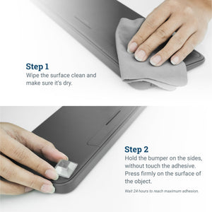 Press bumpers firmly into place on the frame or object. Once a bumper is in place, do not attempt to reposition it as this will ruin the adhesive bond.