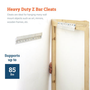 A 10-inch pair of cleats with the Z bar cleat profile. Supports 85 lbs. Best used for small to medium pictures, art, mirrors, and other wall decor.