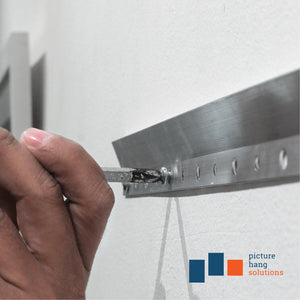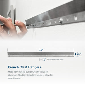 Holes are one inch on center and alternate from large to small hole. Alternating holes allow you to easily level the cleat and/or use larger screws in studs. Small screw hole accommodates up to #8 screw and large screw hole accommodates up to #12 screw