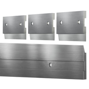 A Heavy-Duty Cleat Hanger set includes one long 36 inch extruded aluminum cleat that is mounted on the wall and three short 2 1/2 inch cleats with a matching profile (shape) that are mounted just down from the top edge of the back side of the object being hung.