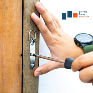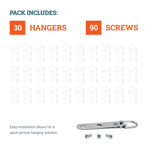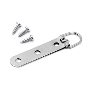 Large strap hangers are strap hangers with a D-shaped steel ring held by a doubled-over steel strap. The strap is designed with multiple screw holes to reduce the possibility of screws tearing out. A quick picture hanging solution, the wide three hole strap hanger provides easy installation.