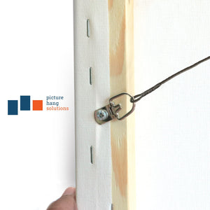 If the frame width allows it, position the hangers in alignment with the angle the picture wire will take when the frame is hung and the wire is under tension.