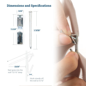 Conventional hooks, also called nickel hooks, are traditional hook-and-wire hangers with an angled nail and a special crimp design. These picture hangers are the framing industry standard and ideal for hanging art, mirrors, home decor, and other similar wall-mounted items.
