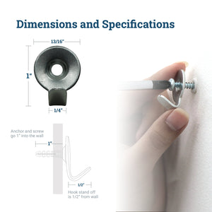 Steel utility hooks are recommended for their strength despite their small size. Thispicture hanger can be used on any surface using your preferred screw or wall anchor. This is our onlypicture hanging hook that uses a screw rather than a nail, which makes for quick and convenientpicture hanging!