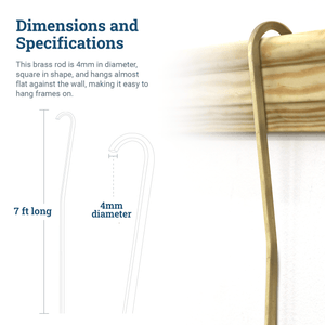 • The rod comes longer than our 5-foot rod to suit various vertical picture hanging needs. Each brass rod is square-shaped, 4mm in diameter, and hangs nearly flat against the wall.