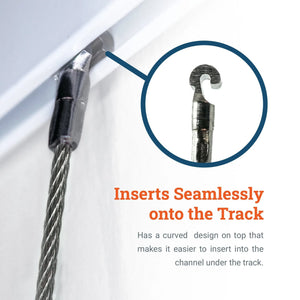 The C001 Steel Cord is a hanging cord that’s compatible with the TR100 wall track. It has a curved design on top that makes it easier to insert into the channel under the track.