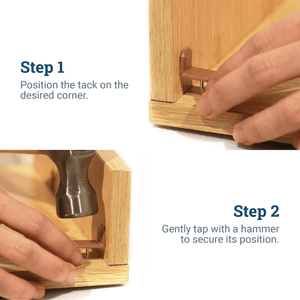 Position the tack on the desired corner.