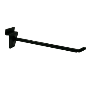 Slatwall hooks are available in three lengths: 4”, 6”, and 8”