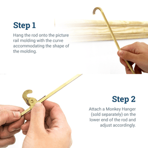 Bring vintage elegance to your gallery wall orphoto display with the brass gallery rod. Its sturdy profile offers maximum versatility along apicture railwhile ensuring stability. Don’t forget to pair it with Monkey Hangers to complete the setup!