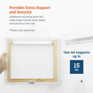 Optional extrahanging hardware set for locking art pieces to the wall, especially high-value art and decor, in wood frames over 24" wide or with French cleats