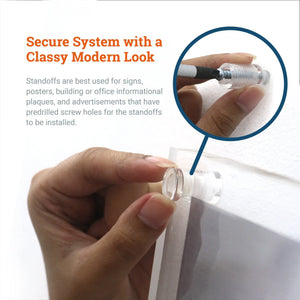 Sign standoffs are hanging hardware for mounting glass or acrylic panels. Also known as spacers or sign holders, this hanging solution allows panels to stand off from the wall by a short distance, providing a floating visual effect. Standoff mounting hardware is a great way to showcase your company logo and informational signs, making it perfect for hotels, restaurants, shopping malls, airports, offices, and other commercial areas.