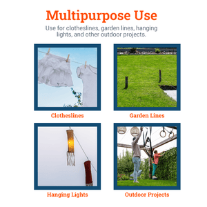 • Rust-resistant and lightweight, ideal for both indoor and outdoor projects, including clotheslines, hanging lights, DIY cable railings, and more.