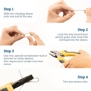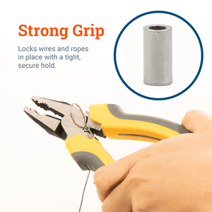 • Use with crimping tools, vise, or compression tools to secure loop ends or join cable lengths. Regular pliers will NOT be able to squeeze or crimp these sleeves.
