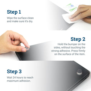 Press bumpers firmly into place on the frame or object. Once a bumper is in place, do not attempt to reposition it as this will ruin the adhesive bond.