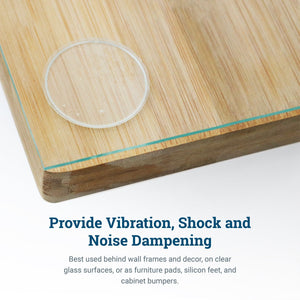 Clear round rubber bumpers best used on frames, lids, cabinets, and other home furniture as wall protectors and cabinet door silencers