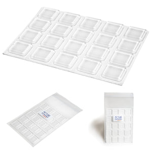 Clear square rubber bumpers best used on frames, lids, cabinets, and other home furniture as wall protectors and cabinet door silencers