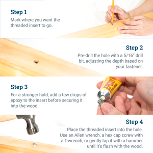 For a stronger hold, add a few drops of epoxy to the insert before securing it to the wood. This will help the insert stay in place.