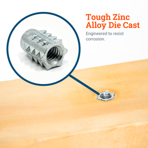 A threaded insert is a cylindrical metal piece with internal threading, designed to be inserted into pre-drilled holes. It creates a threaded socket for installing screws, bolts, or other fasteners. These silver threaded inserts for wood provide a secure, long-lasting hold when joining wood, chipboard, and plywood.
