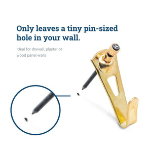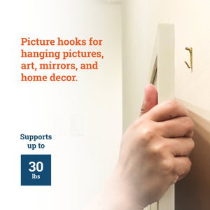 Individually bagged courtesy picture hooks for hanging art, mirrors, and other decor on drywall, wood panels, and plaster walls