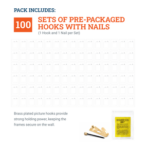 Includes hook and nail pre-packaged sets