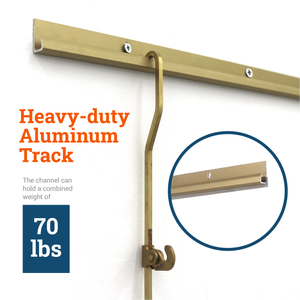 • 6 Foot long aluminum J Channel Moulding to hold gallery rods.