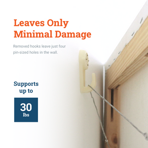 Hardwall plastic hooks are an excellent solution for simple, lightweight applications on hard wall surfaces. Installation is quick and easy, requiring only a hammer, and the hooks leave minimal damage with only four small shallow holes in the wall.