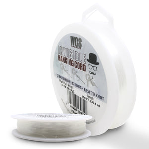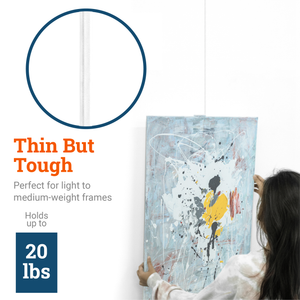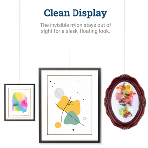 Like picture wire, hanging cords are a staple in picture hanging, a classic component that has been used for centuries. Made of durable nylon, the clear hanging cord ties and cuts like wire and is easy to apply on hardware. Its invisible, seamless quality makes it ideal for creating gallery displays and hanging window treatments, ornaments, signs, and more.