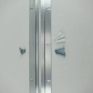 - Attach the cleat to the wall at your marks using the #8 x 1" screws and plastic wall anchors provided. Small adjustments to the level can be made by making use of the slotted screw holes.