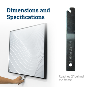 A security wrench is a thin metal tool with a long handle and a unique opening for the T-head security screw. It’s essential in the final step of locking and unlocking a frame on the wall using a security kit, reaching two inches behind the artwork to make installation quicker and prevent scuffed walls. The security wrench can be used as often as needed with all Picture Hang Solutions security hardware.