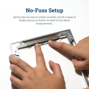 These spring clips are fixed to the back of the picture frame channel and apply pressure on the display with their spring-loaded design.