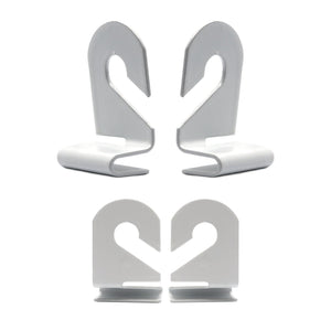 Drop ceiling hooks are two-part hooks designed for suspending items from drop ceilings, such as posters, advertisements, and ceiling decorations, making them ideal hangers for office and commercial settings. A drop ceiling hook hangs with its tip facing the ceiling and a thin slot for grids to pass through, with two hooks creating a closed-end hook.