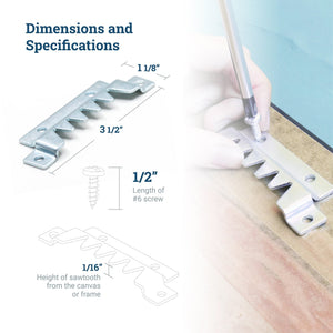 The mega sawtooth hanger is the largest and strongest sawtooth hanger commercially available. Its unbreakable and unbendable steel is ideal for super heavy duty applications, including large pictures, mirrors, and custom wood art.