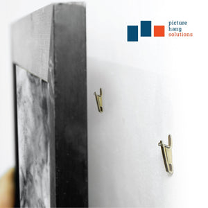 Hang the frame so that the sawtooth edges of each hanger rest on the exposed shank of the nail inside the special wall hooks.