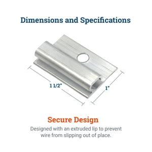 Wire hangers help keep hanging wire in place when hanging picture frames. Also known as a wall dog wire hanger due to its pre drilled hole for wall dog screws, this aluminum safety hanger has an extruded lip that prevents wire from slipping out easily when the frame is lifted. This provides a larger point of contact to hold the wire securely in place.